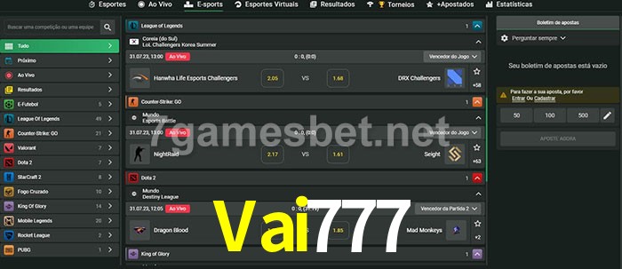 A aposta Vai777 oferece aos jogadores a experiência mais conveniente de apostas em eSports!